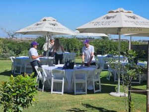 The farm itself made a big impression on guests visiting for the first time, with newly laid out paddocks and well-spaced fences enhancing the attractive farmhouse. Steve Ajax and Charles Palmer had returned to the UK before the open day, but Sally Bruss, the third partner in Paardeberg, was on hand to welcome and chat with visitors.