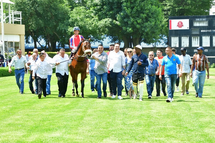 Taegan’s Champ was very green and there was a worrying moment or two, but he ultimately quickened superbly at the business end to win by 6,50 lengths with the commentary almost being drowned out by the cheering of the excited connections.