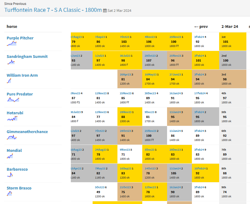 However, after Saturday’s Gr 1 TAB SA Classic in which Gr 2 Jonsson Workwear Dingaans winner Purple Pitcher beat Sandringham Summit for the second time in three meetings, this time by 0,75 lengths and in the Dingaans by two lengths, he decided to re-rate the Graham Beck and downgraded it by ten points.
