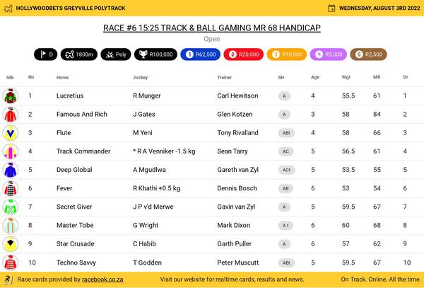 Hollywoodbets Greyville Poly Wednesday August 03 Fields