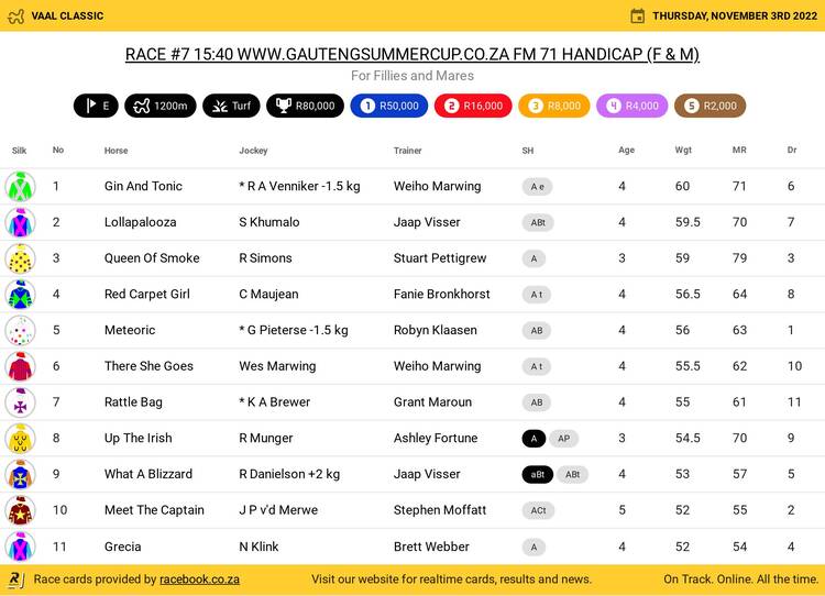 Puller leads the KZN Trainers CHampionship on 20 wins and is followed by Peter Muscutt on 17 and Wright on 16 with Kumaran Naidoo and Wendy Whitehead on 15 each and reigning champion Gareth van Zyl on 14.