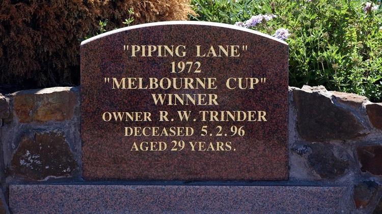 Embarrassed, he jumped to his feet and almost fell over again when he was told that Piping Lane had won the race – by just over a length from the favourites, Magnifique and Gunsynd. Piping Lane became the only Tasmanian-bred horse to win the Cup during the 20th century and he remains the only Cup winner that was bred and owned in Tasmania.