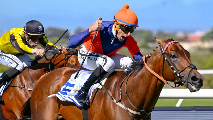 Gavin Lerena regarded his winning the L’Ormarins King’s Plate on One Stripe as the number one highlight of his second championship-winning season (Chase Liebenberg Photography)