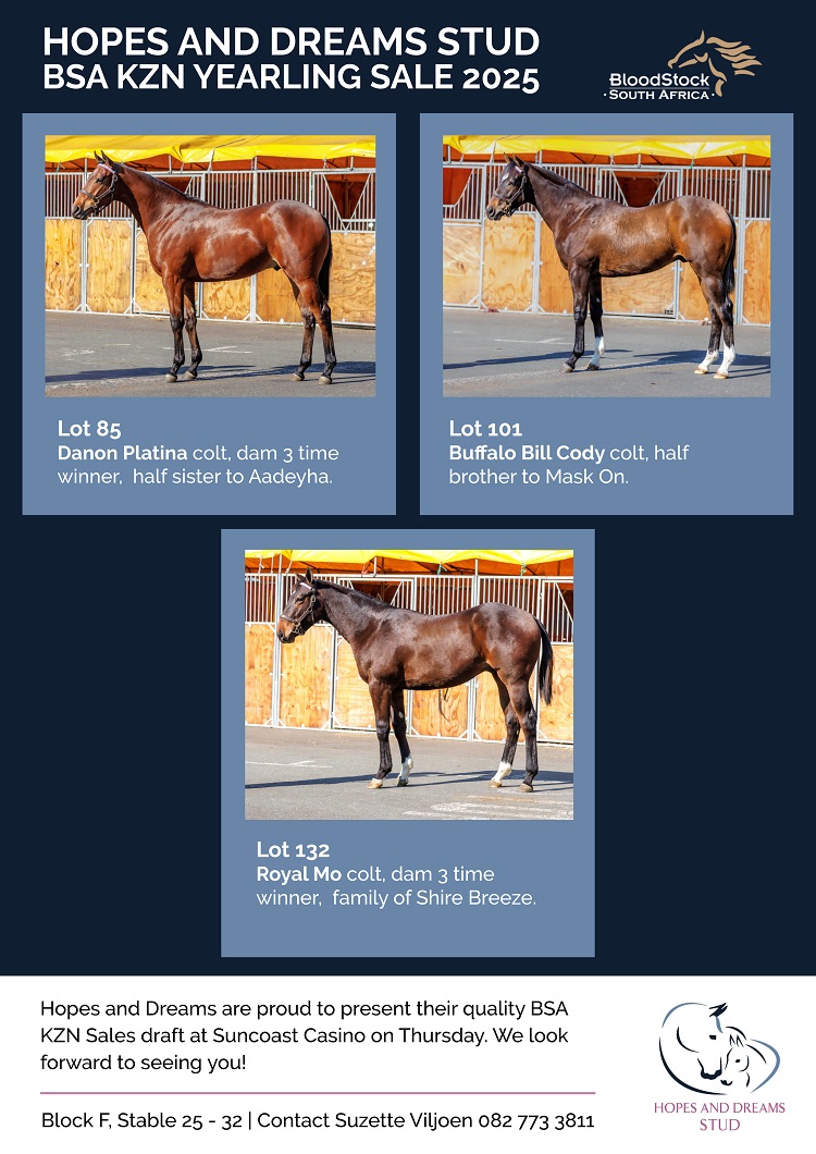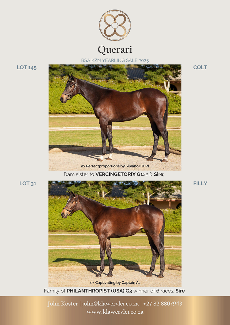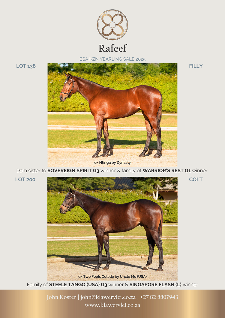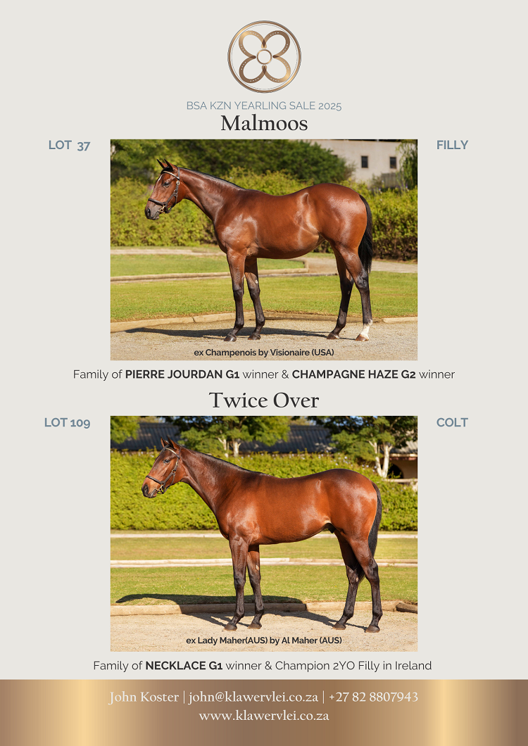 The Glen Kotzen-trained Bombers In The Sky (Lancaster Bomber) and the Justin Snaith-trained Future Swing (Futura) in the Gr 3 Durban Gold Vase over 3000m.