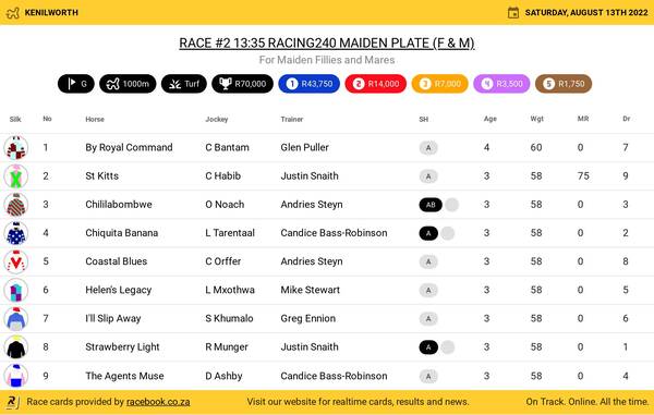 The R600 000 race will be contested over 1400m at Kenilworth on Sunday, 30 October. It will follow the 2022 CTS Ready To Run and Unbroken Two-Year-Old Sales scheduled for Saturday, 29 October.