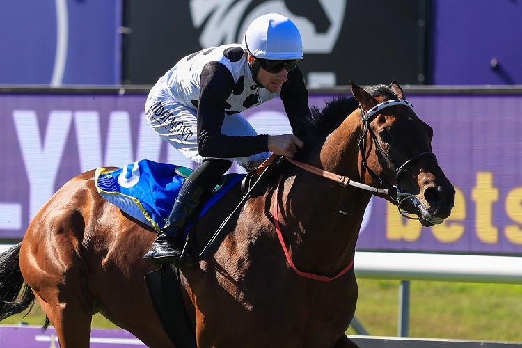 Zac Lloyd wins the Gr 1 Randwick Guineas on a Tom Charlton and John O’Shea-trained horse called Linebacker (Picture: John O’Shea Racing)