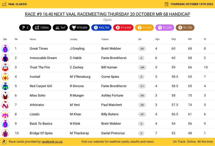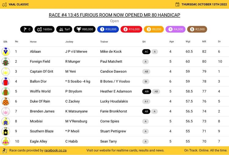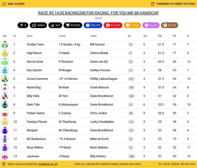 14 Double Destiny (3F) 53.5 94 Alan Greeff