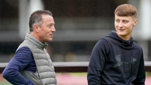 Kieren Fallon with son Cieren: “When jockeys go over the count currently and keep the race it can leave a sour taste” Alan Crowhurst (Getty Images)
