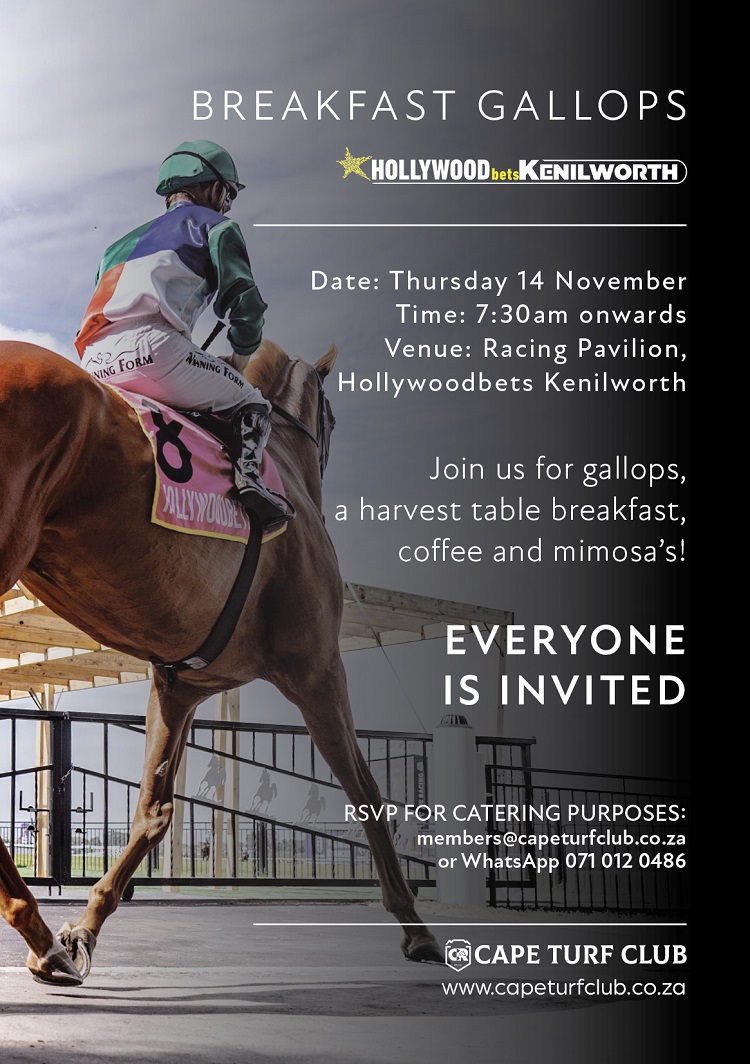 He will come back in the WSB Green Point Stakes over 1600m on December 7 before lining up in the L’Ormarins King’s Plate and the WSB Met.