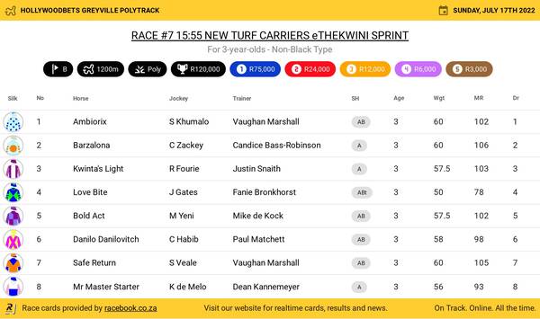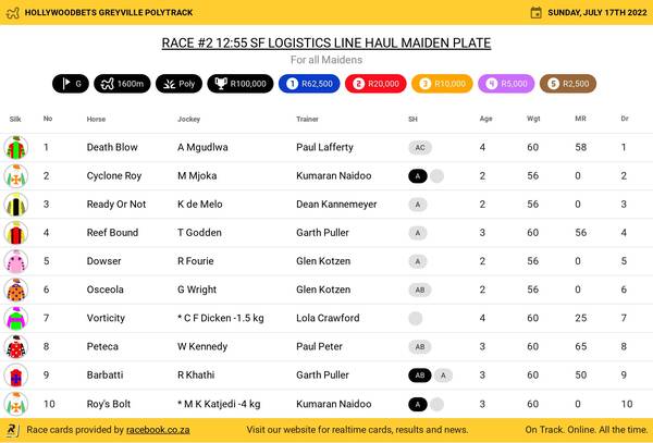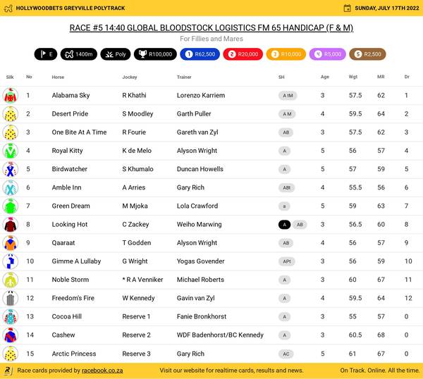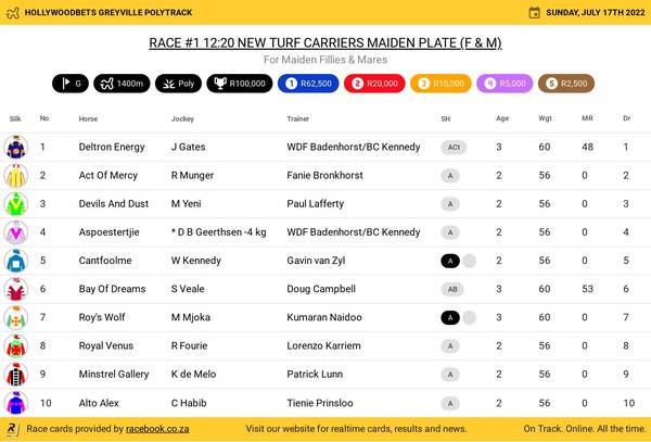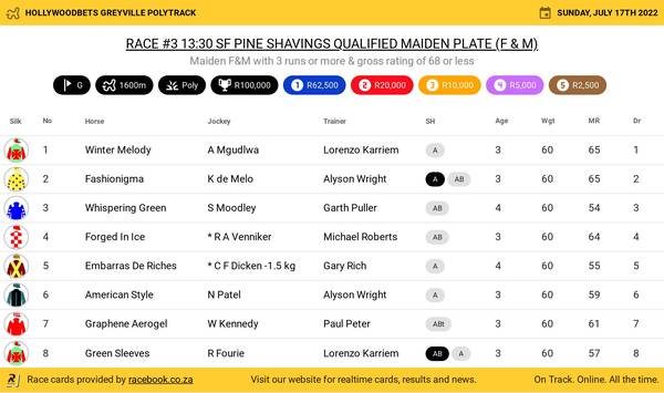 Hollywoodbets Greyville Poly Sunday July 17 Fields