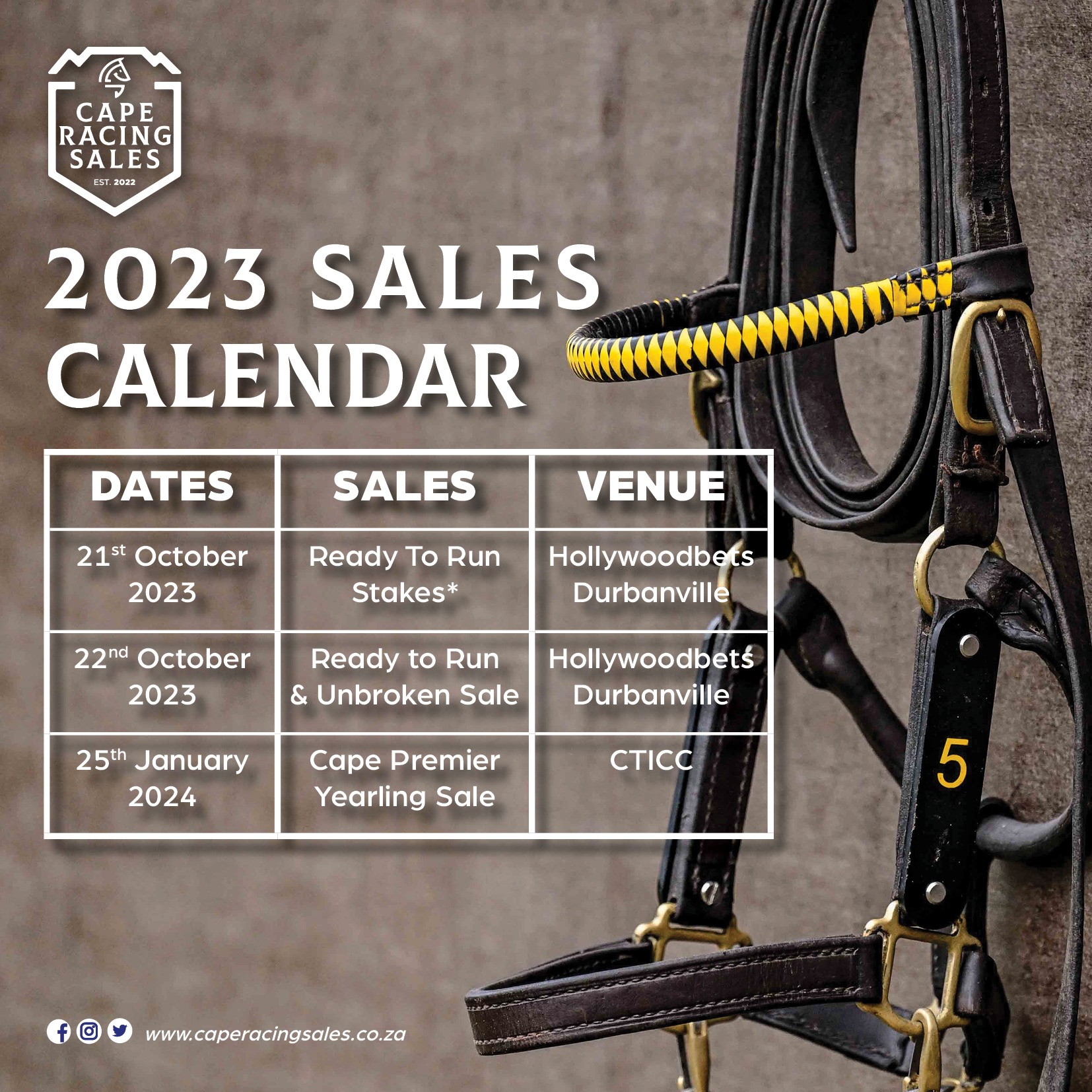 The sale will be covered live on Racing TV (DSTV#240), and buyers wanting to participate online can request a Zoom link from john@cthbs.com. The catalogue is available online on www.capethroughbredsales.com