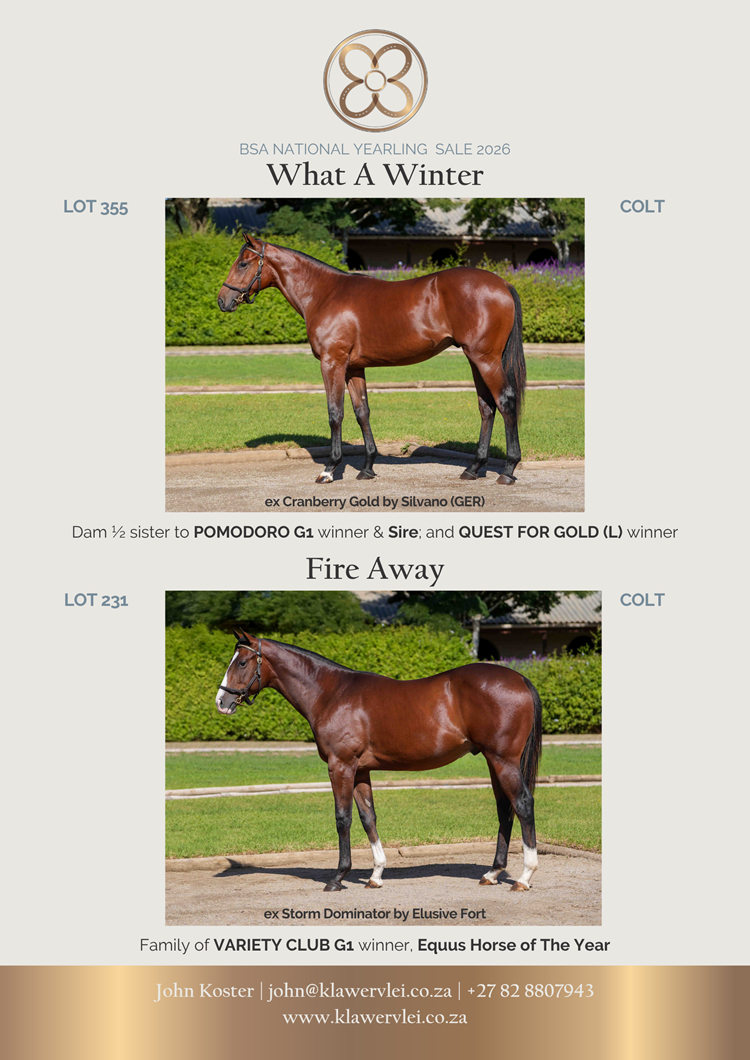 He was lot 163 and then came lot 195, a Varsfontein Stud-bred Vercingetorix filly out of the Master Of My Fate mare Sentbydestiny, who beat the boys when winning the Gr 1 Premier’s Champion Stakes as a two-year-old.