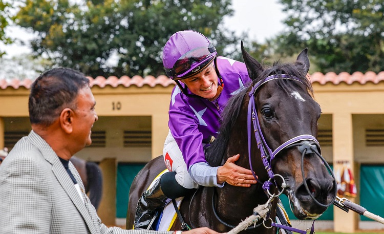 Rachel Venniker, who is currently in the news due to her exciting opportunity in Saudia Arabia in an International Jockeys Challenge on Friday, put her hand up as a ride of the month candidate at Hollywoodbets Scottsville on Sunday when saluting on the Yogas Govender-trained five-year-old Gimmethegreenlight gelding All The Time.