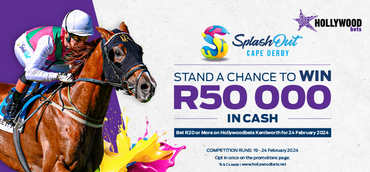 This Saturday in the Gr 1 Splashout Cape Derby over 2000m at Hollywoodbets Kenilworth the Dean Kannemeyer-trained Khaya Stables Gimmethegreenlight colt Green With Envy is the 18/10 favourite with Hollywoodbets.