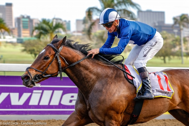 Clifton Stud-bred Vercingetorix filly Alesia’s Love gives Gavin Lerena and Roy Magner a double together and secures a four-timer on the day for Lerena (JC Photos)