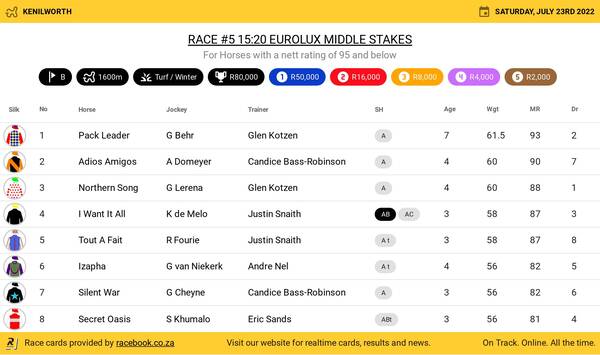 Kenilworth Saturday Feature Meeting Formguides And Selections