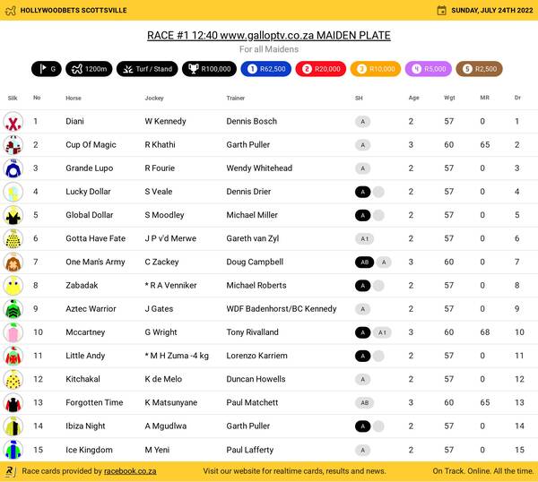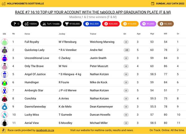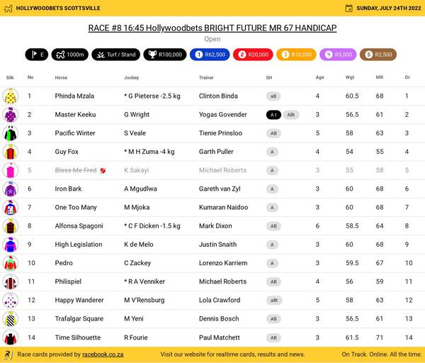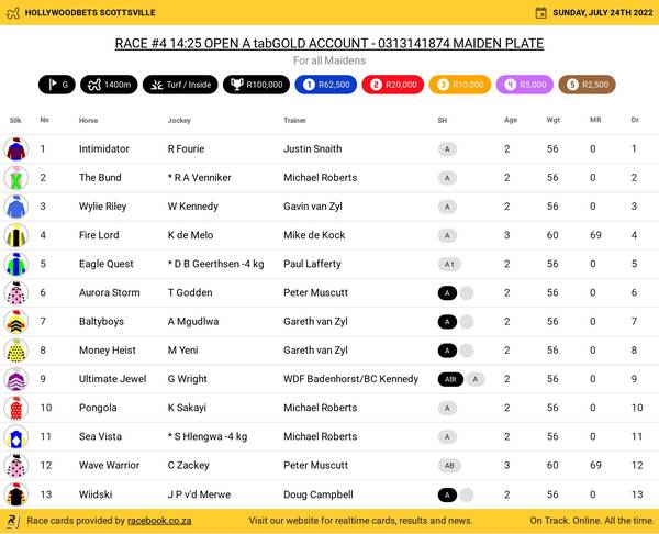 Hollywoodbets Scottsville Sunday July 24 Fields