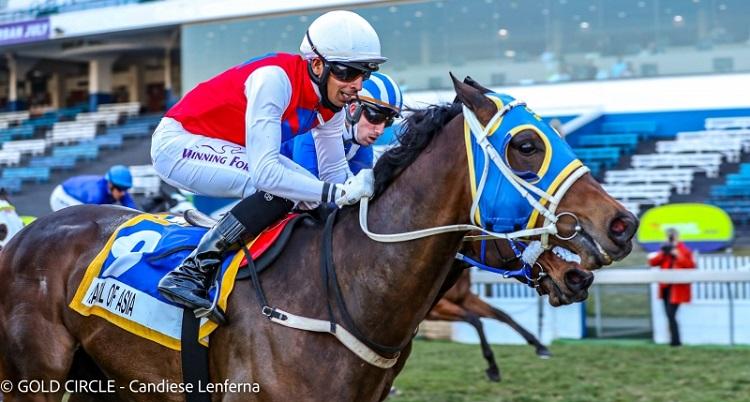 Global Breeze (Global View) gives Grant Maroun and Philasande Mxoli respective doubles at the Vaal Classic track today (JC Photos).