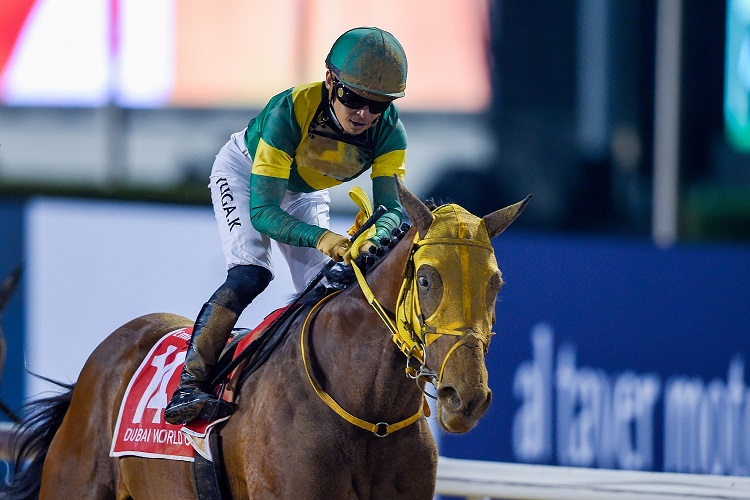 Jockey Yuga Kawada and Ushba Tesoro on the way to victory at the Dubai World Cup. Picture: Anadolu Agency/Gallo Images