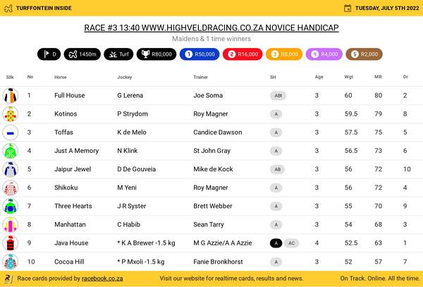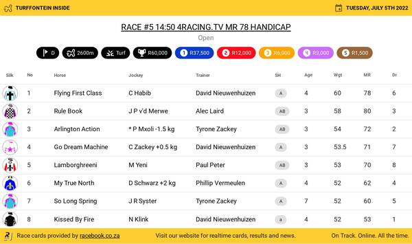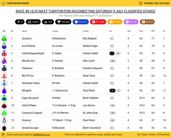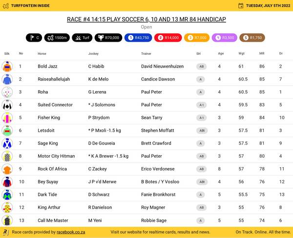 Mike de Kock has now won five July’s, sponsored for the first time on Saturday by Hollywoodbets, and has won 133 Grade 1s.