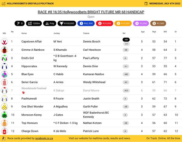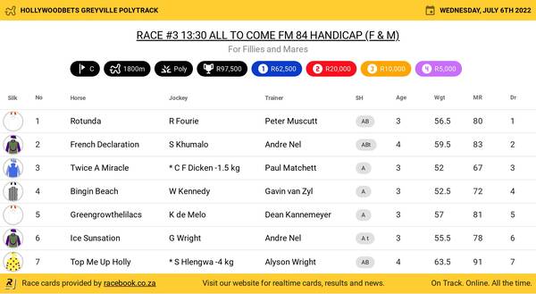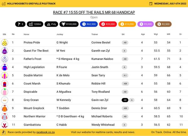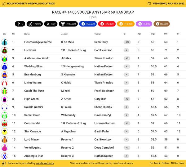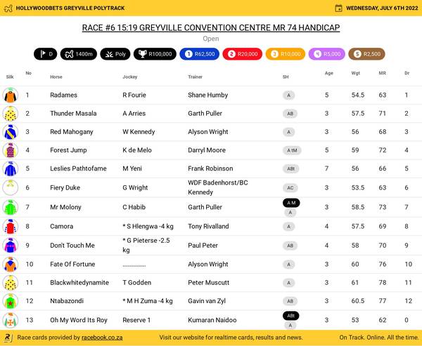 Hollywoodbets Greyville Poly Wednesday June 6 Fields