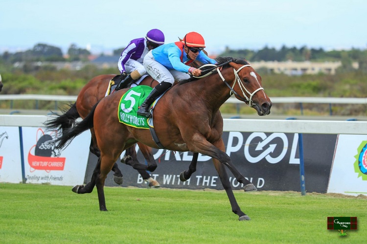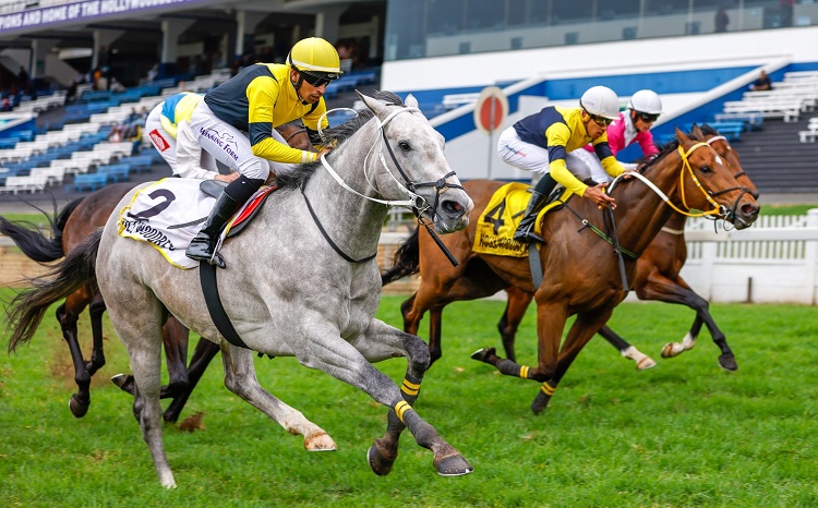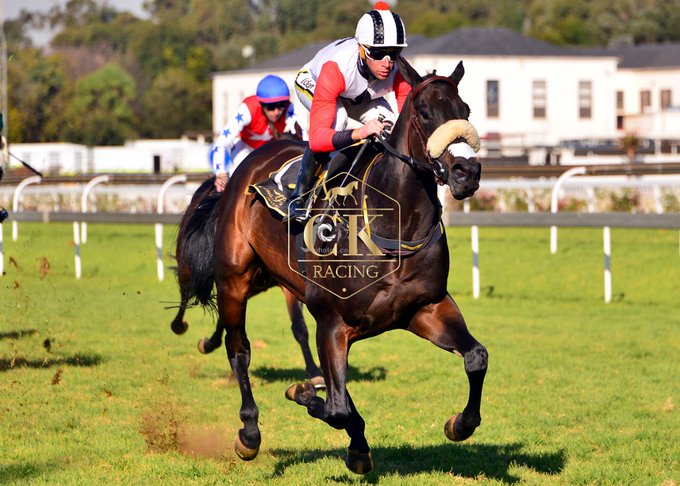 Southern Cape gives trainer Paul Lafferty, owner John Finlayson and jockey Muzi Yeni the first leg of a double together at Hollywoodbets Scottsville today. (Candiese Lenferna).