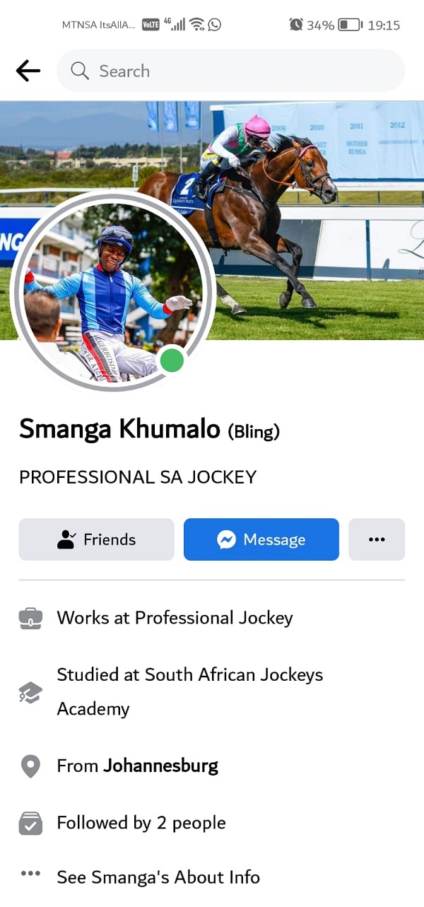 “Professional jockeys are not permitted to gamble and ‘Bling’ has never offered tips for reward on Facebook or any social media platform,” confirmed Monty, who said that Smanga was saddened to know that innocent and unwitting fans may be lured into the scam.