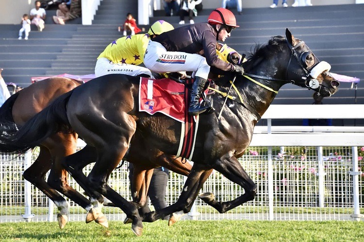 Thunderstruck wins what has proven to be the last race of his career at Turffontein Standside on Saturday (JC Photos)