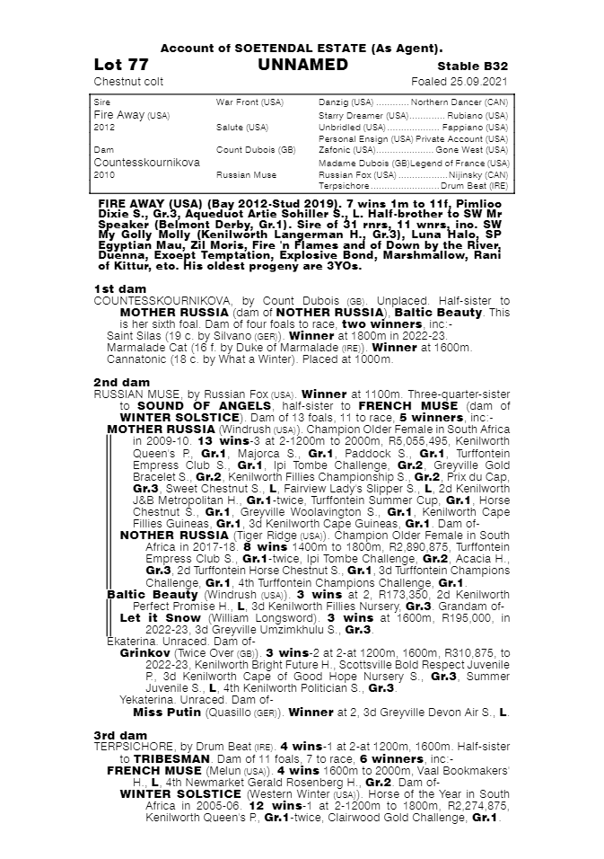 Lot 77, a good looking Fire Away colt (Cape Racing Sales)