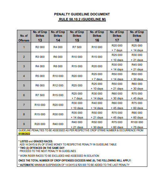 Recently Corne Orffer was fined R20,475 and suspended for 21 days for using the whip 17 times in a Gr 3 race.